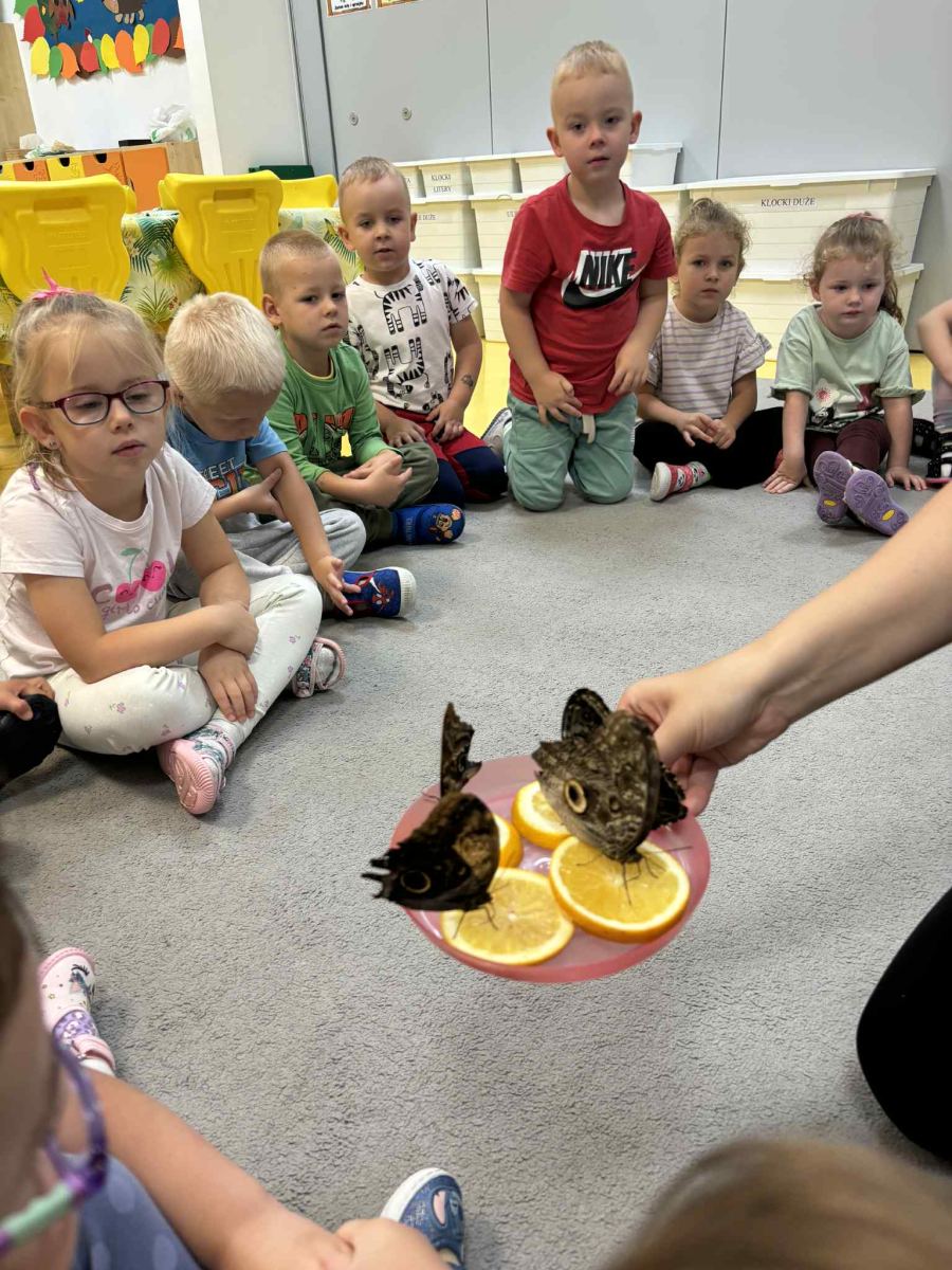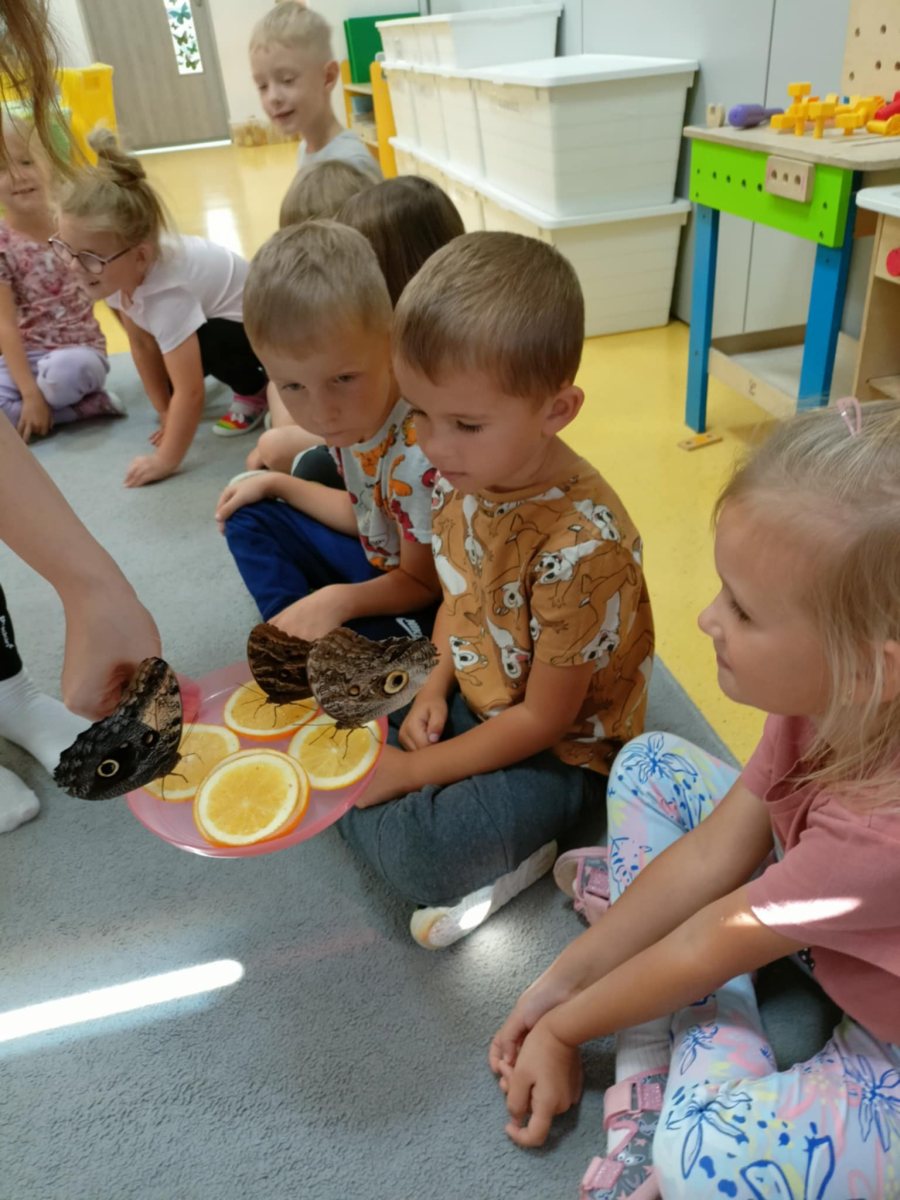 wraz z pięknymi okazami egzotycznych motyli. Podczas spotkania dzieci dowiedziały się skąd