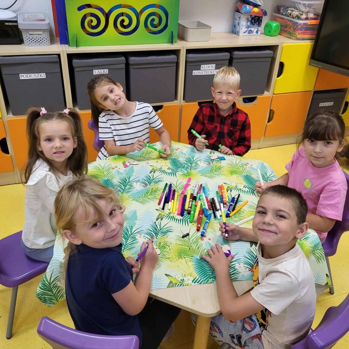 barwnego owada na dłoni. Zwieńczeniem spotkania było kolorowanie drewnianych magnesów na