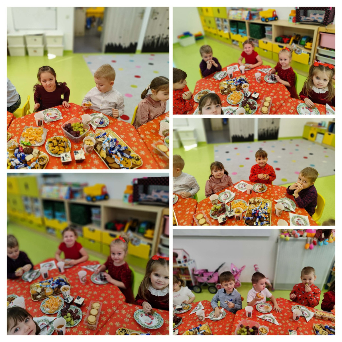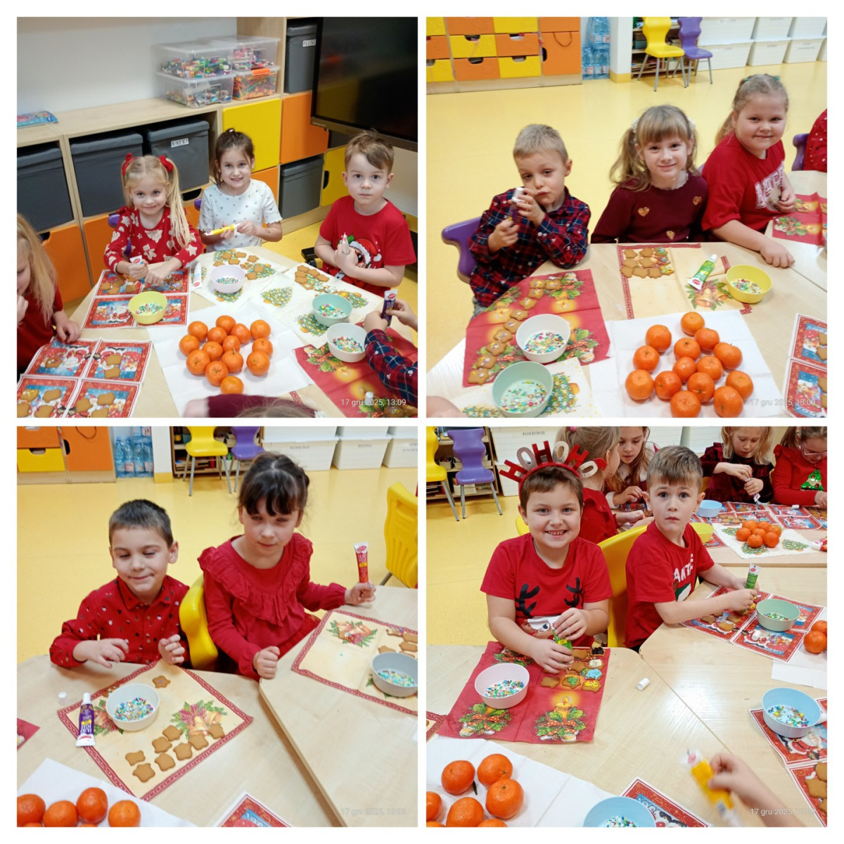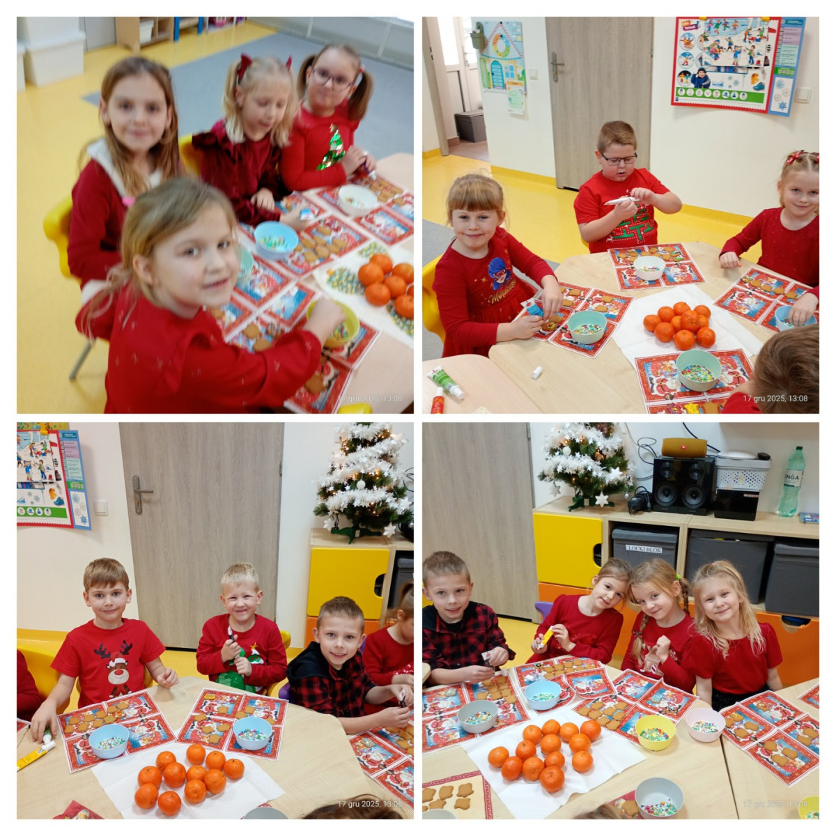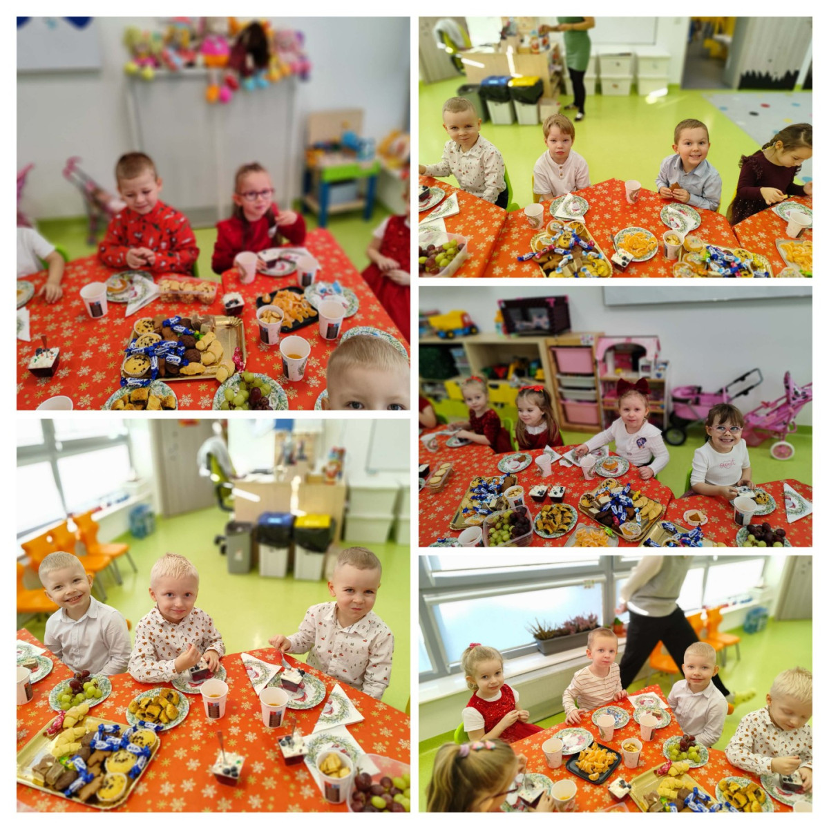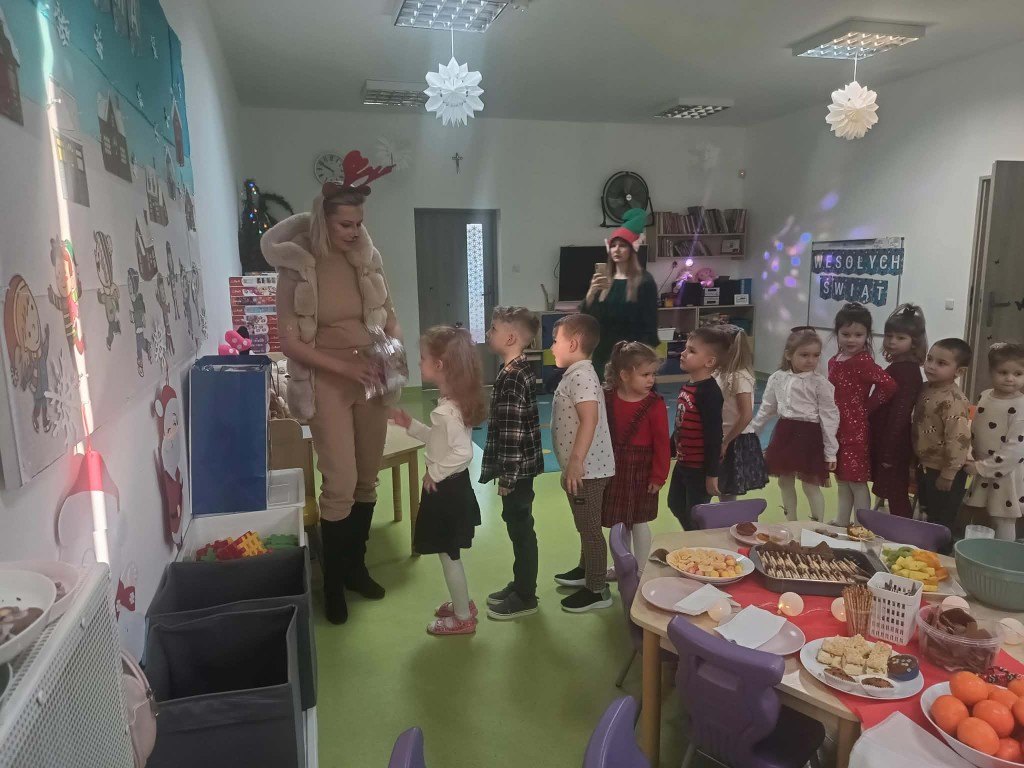 Grudzień to magiczny miesiąc, w którym czekamy na te najważniejsze dni Bożego Narodzenia 🎄 Dzieci przygotowują się do nich poprzez naukę kolęd i piosenek świątecznych 🎶 Tworzą kartki świąteczne z życzeniami, magicznie wyglądające prace plastyczne, ozdabiają pierniki. Czekają również na Wigilię grupową, podczas której składają sobie życzenia, zajadają przysmaki i spędzają razem czas. W całym przedszkolu jest sześć grup. Każda grupa czas świąteczny spędza inaczej, ale wszystkim przyświeca jedna idea, aby dzieci miło i radośnie spędzały czas w przedszkolu, przy okazji poznając tradycje bożonarodzeniowe