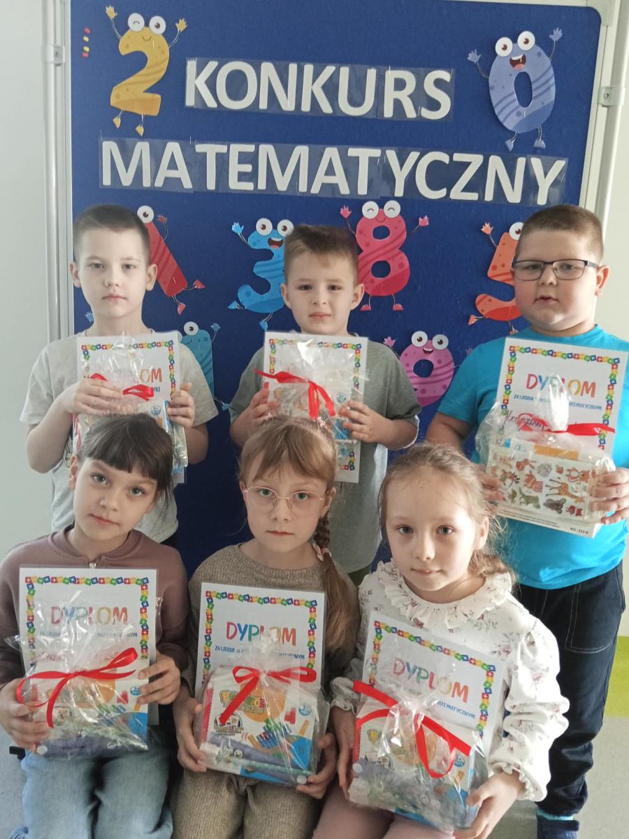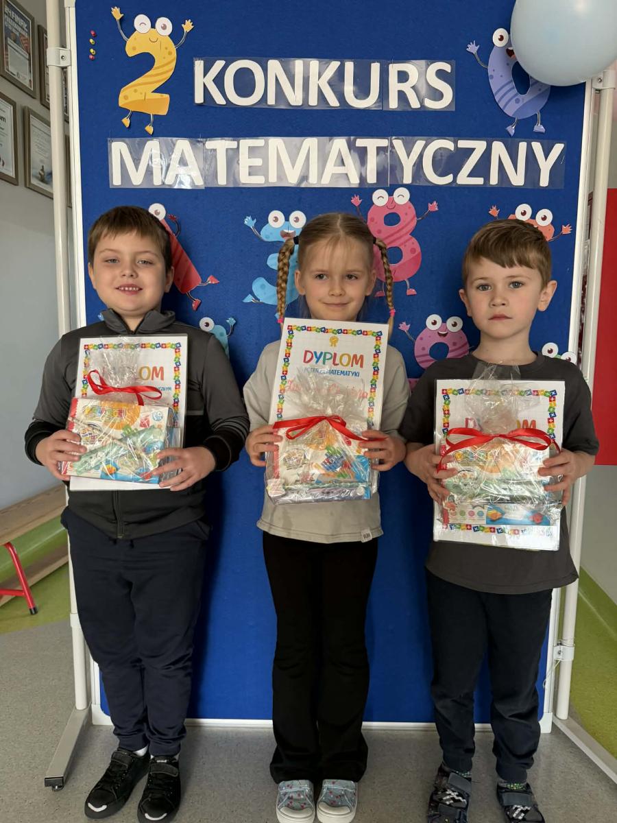 Za udział w konkursie wszystkie dzieci zostały nagrodzone drobnymi upominkami oraz otrzymały pamiątkowe dyplomy. Wszystkim małym matematykom serdecznie gratulujemy oraz życzymy kolejnych sukcesów!